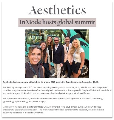 Take a look at the latest press coverage featuring InMode UK, from recent articles to interviews and media mentions. It’s a snapshot of how InMode is showing up in conversations across the aesthetics and medical industry.